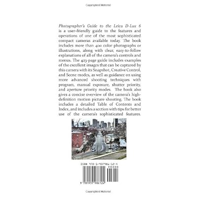 This is a very useful guide to the Leica D Lux 6 that explains the capabilities of this amazing camera. It goes beyond exposing the camera functions by giving examples of how these functions work and the advantages and disadvantages. It has numerous really excellent photos to illustrate the text, that are very helpful. Also it explains the basic concepts of digital photography while explaining how the camera works with these concepts.