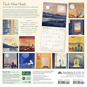 Thich Nhat Hanh's words give you a sense of peace, mindful, and thought. The 2020 calendar with beautiful artwork and wisdom is perfect for the workplace. The calendar is a reminder that we can take time or pause to reflect. No reason to rush, even at work where we face stress.Mindfulness is available to us in every moment, whether through meditations and body scans, or mindful moment practices like taking time to pause and breathe when the phone rings instead of rushing to answer it. Every year I pick a wall calendar, sometimes its the beauty of nature, other times its something to ease my mind. This calendar is wonderful.